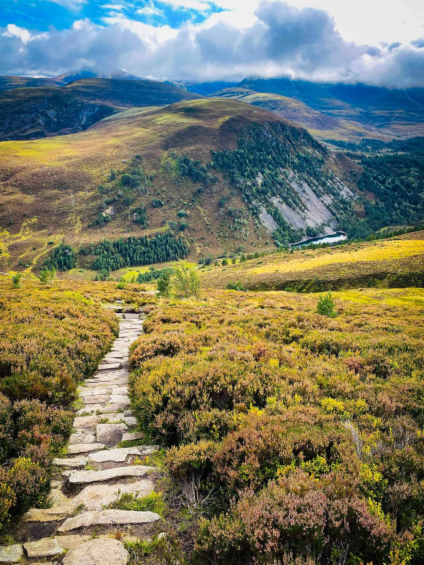 The climb up Meall a' Bhuachaille was quite challenging, but the reward was worth it. The landscape was simply breathtaking. The clouds were rolling around, the air was fresh, and the birds were singing; thankfully, the sun made a brief appearance. I didn't see many people hanging around the top, so I got to reflect on my 810m Scottish Mountain. The hike down was a bit easier, and I spent some time exploring Ryvoan bothy and Lochan Uaine (The Green Loch); legend has it that the stunning green colour comes from the Pixies that wash their clothes there.