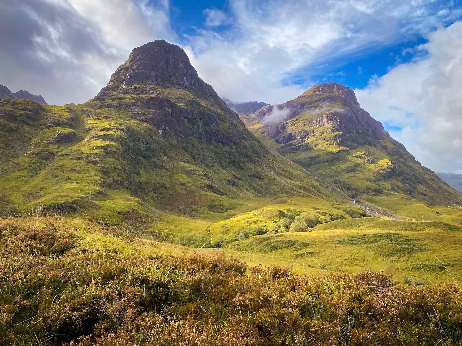 Exploring the Scottish Highlands on my six-day campervan adventure was a dream come true. One of the most breathtaking places I visited was the stunning Glencoe. The area is located in the Western Highlands of Scotland and is known for its dramatic scenery. I had the pleasure of hiking through the Lost Valley and felt like I was part of a fairytale. The rolling hills, bubbling streams, and rocky outcrops were mesmerising. I really felt like dinosaurs were going to be around the corner, and the Jurrasic theme tune wouldn't leave my head. The Lost Valley can be a moderate hike; the most challenging part is hiking from the car park at The Three Sisters and down towards the valley; however, there are steps and bridges to assist you. I found a circular route that walked down through the valley to where you need to cross the water; however, on the day I went, the water was quite fast flowing, and I didn't want to travel, so I managed to find a path that took me up the side of the valley and headed back to the van giving me views of the valley from above, which was so grateful for; I had fallen in love.