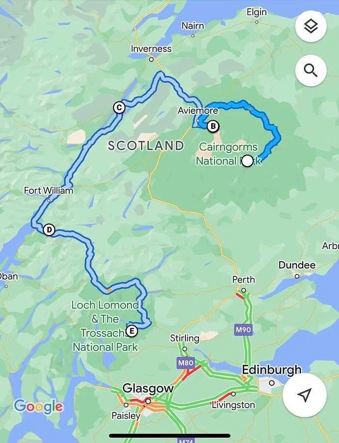 The planning process for my Scottish road trip was the first step in making it a reality, and sometimes, I often feel it's one of the best bits. The thought of my first trip away in my van after converting it was so exciting, but I knew I had to research and prepare before taking off. The first thing I did was look at maps of Scotland, which I marked with all the places I wanted to go and the sights I wanted to see. Then, I figured out the route I wanted to take, mapping out what highways and roads I would use along the way. Finally, I began researching each destination I wanted to visit and the places where I could stay overnight. I booked one campsite halfway through to ensure I could fill up and empty water, charge my power station, and obviously have a shower. Around that, I planned on camping in my van. The Park4Night app helped me with this as I needed to familiarise myself with places to pull up in Scotland. Once I had my route planned and all of my preparations complete, I was ready for my Scottish road trip.